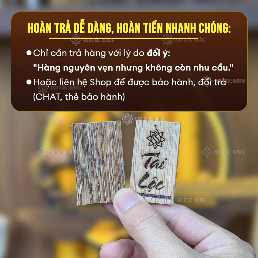 Slogan của chúng em: SƠN MỘC HƯƠNG - TRẦM CHUẨN - GIÁ CHUẨN. BẢO HÀNH ĐỔI TRẢ TRONG 30 NGÀY.