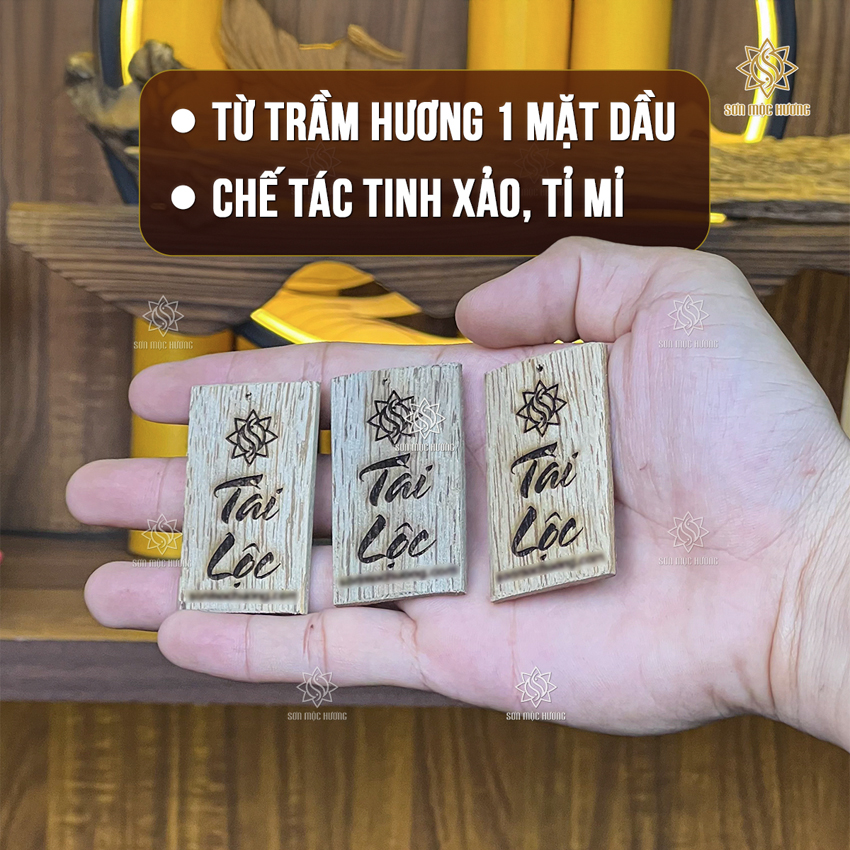 Chữ "Tài Lộc" được khắc tỉ mỉ trên nền trầm hương sạch chính là biểu tượng của sự giàu có. Đặt miếng trầm trong ví giúp kích hoạt năng lượng dương, mời gọi những cơ hội mới về tiền bạc và giúp việc kinh doanh, công việc hằng ngày trở nên hanh thông hơn.