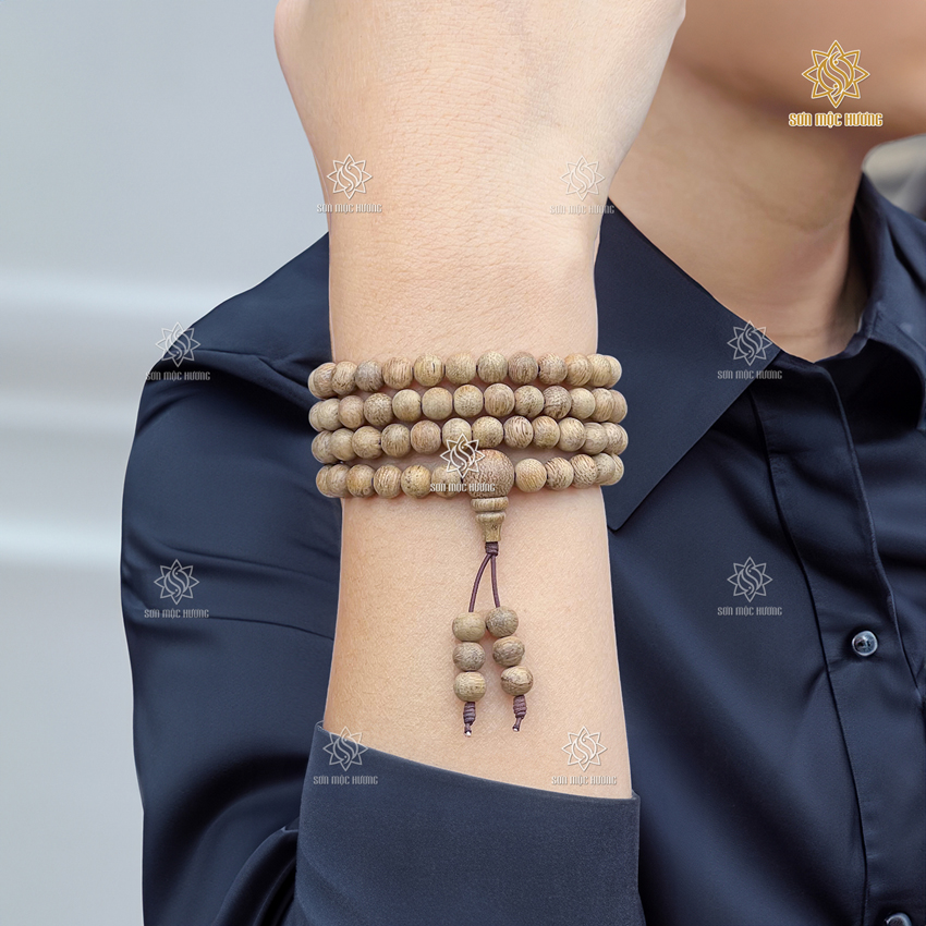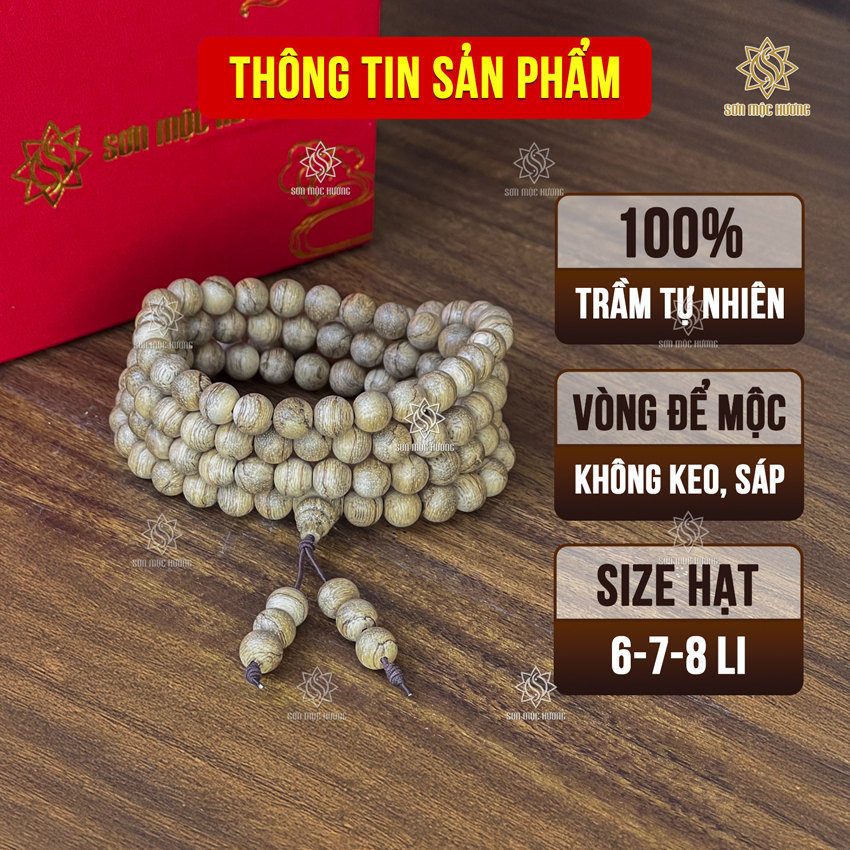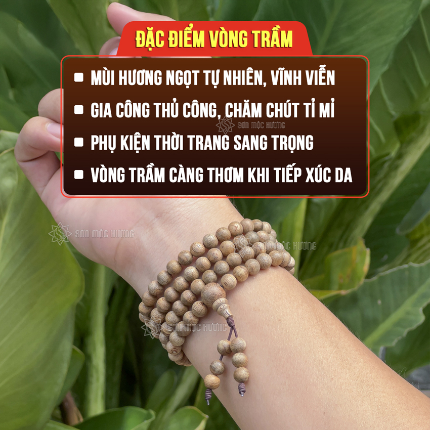 Vòng tay chuỗi tràng 108 hạt trầm hương tự nhiên 6li cao cấp đeo tay nam nữ mang ý nghĩa phong thủy may mắn tài lộc bình an Sơn Mộc Hương
