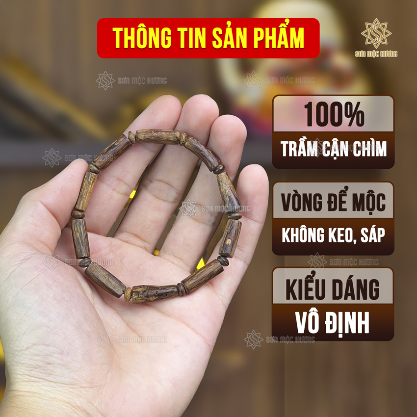 Trong giới mộ điệu trầm mộc, Trầm hương Cận Chìm luôn được săn đón bởi mật độ tinh dầu dày đặc và hương thơm sâu lắng. Điểm đặc biệt của dòng sản phẩm này tại Sơn Mộc Hương chính là hình dáng Vô định – giữ trọn vẹn phôi gỗ thực tế, giúp mỗi chiếc vòng trở thành một thiết kế độc nhất, không bao giờ đụng hàng.