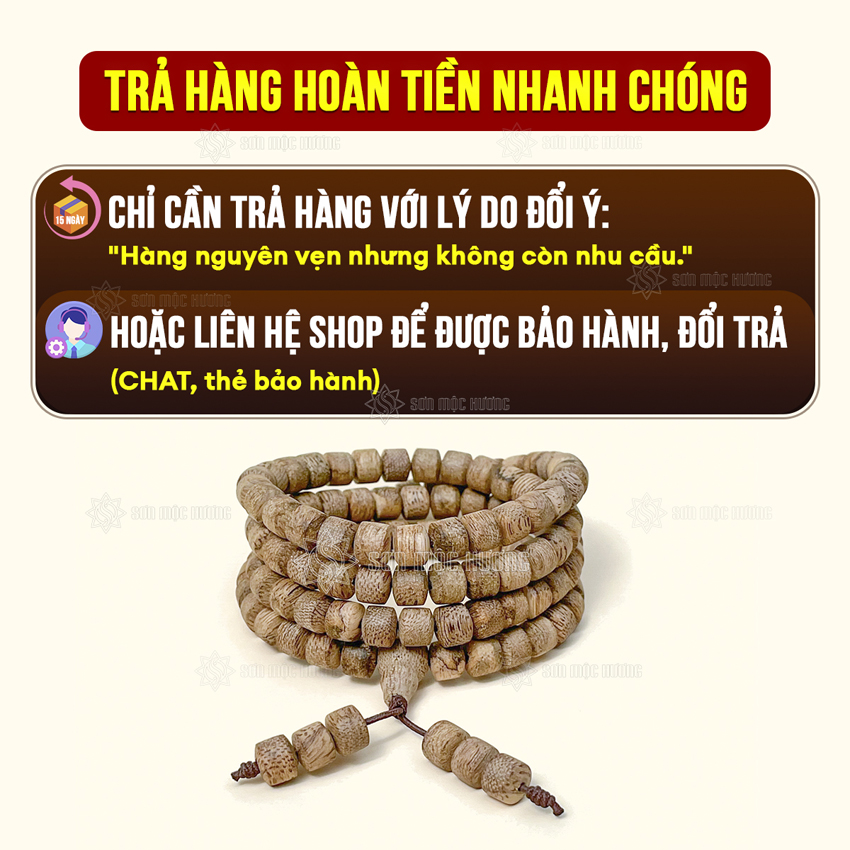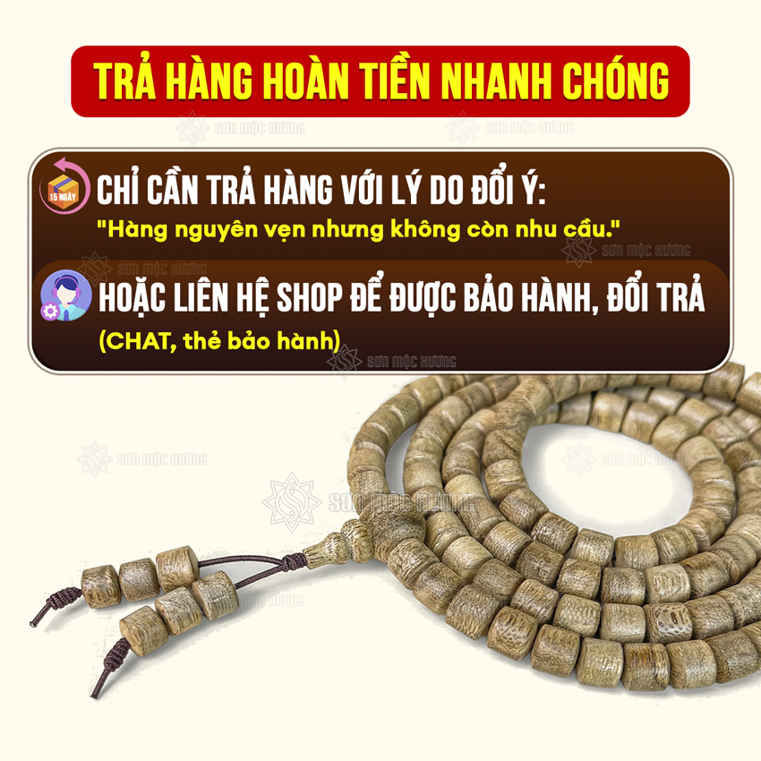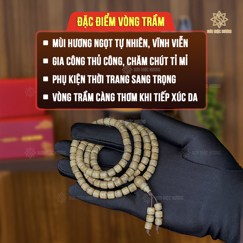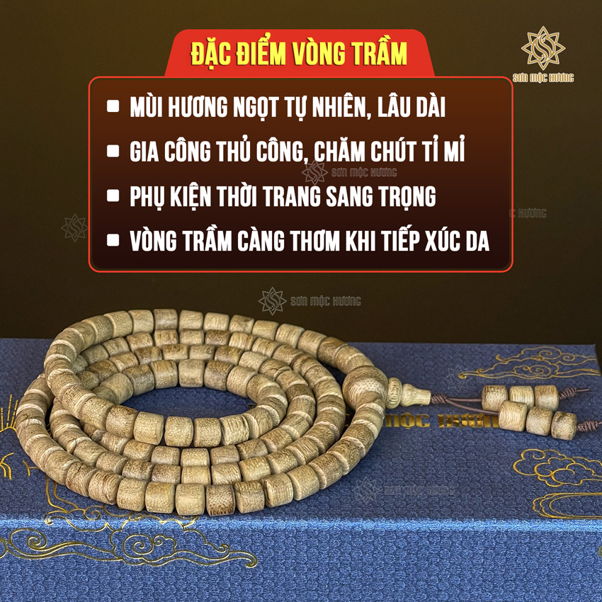 Vòng tay trầm hương chuỗi 108 hạt lu thống tốc kiến 6li cao cấp Sơn Mộc Hương đeo tay nam nữ phong thủy