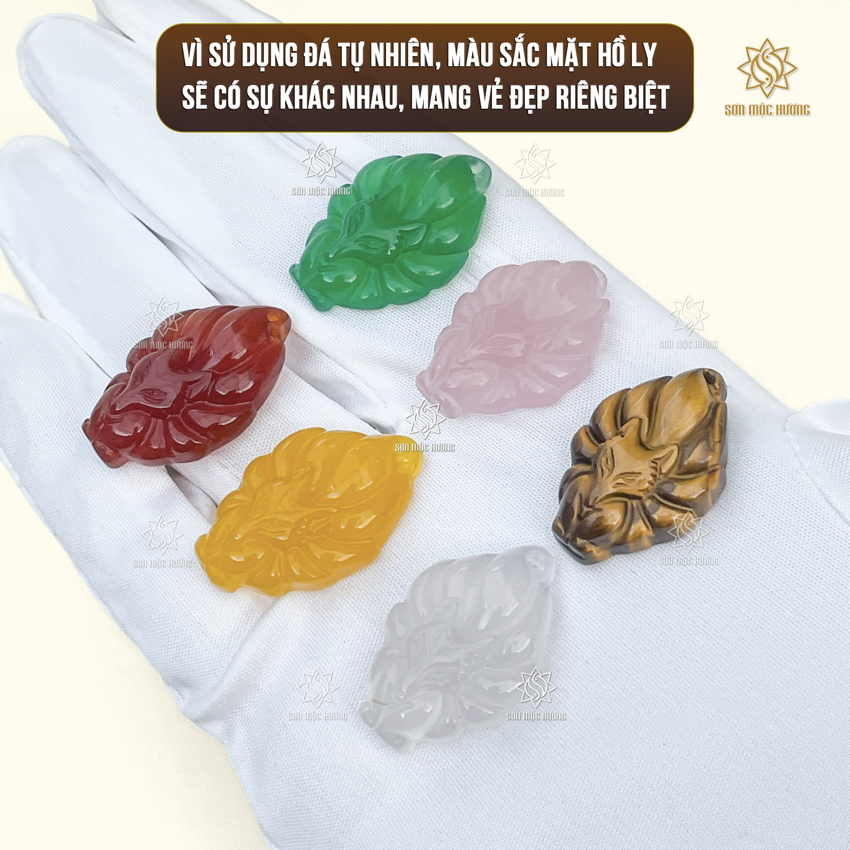 Đá Mã Não nổi tiếng với độ bền cao và bề mặt bóng mịn. Khi được chế tác thành hình Hồ Ly, chất liệu này toát lên vẻ sang trọng, tinh tế. Mỗi màu sắc mang một ý nghĩa riêng: