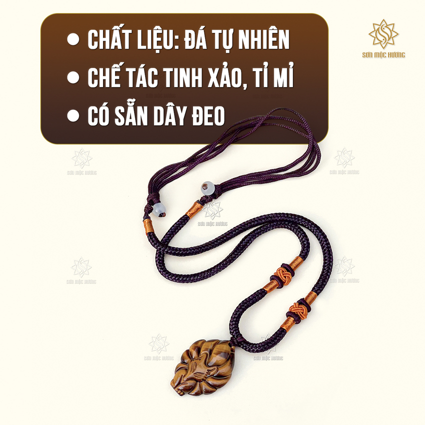 Mặt dây chuyền hồ ly đeo cổ từ Sơn Mộc Hương được chế tác tỉ mỉ từ đá mã não và đá mắt hổ, mang đến sự đa dạng về màu sắc và biểu tượng quyến rũ, mạnh mẽ. Sản phẩm không chỉ là trang sức mà còn thể hiện sự tinh tế và cá tính của người đeo.