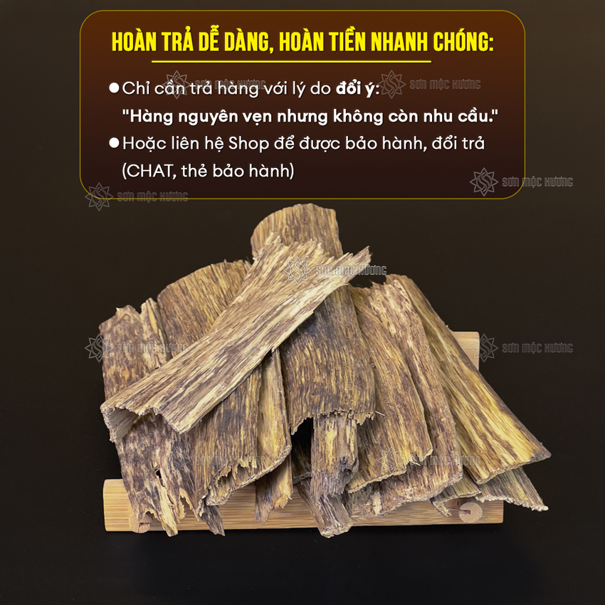 Slogan của chúng em: "SƠN MỘC HƯƠNG - TRẦM CHUẨN - GIÁ CHUẨN. BẢO HÀNH ĐỔI TRẢ TRONG 30 NGÀY."