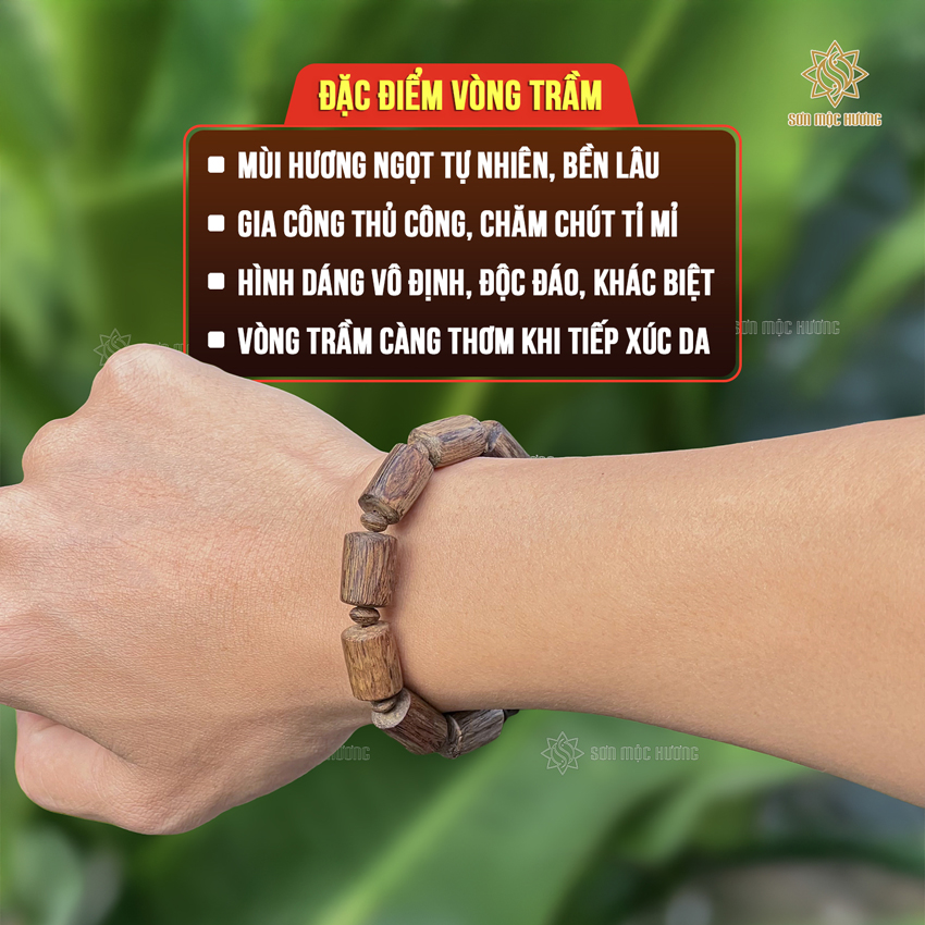 Đặc tính: Càng đeo lâu, hạt trầm càng bóng đẹp và tỏa hương rõ nét nhờ tiếp xúc với thân nhiệt.