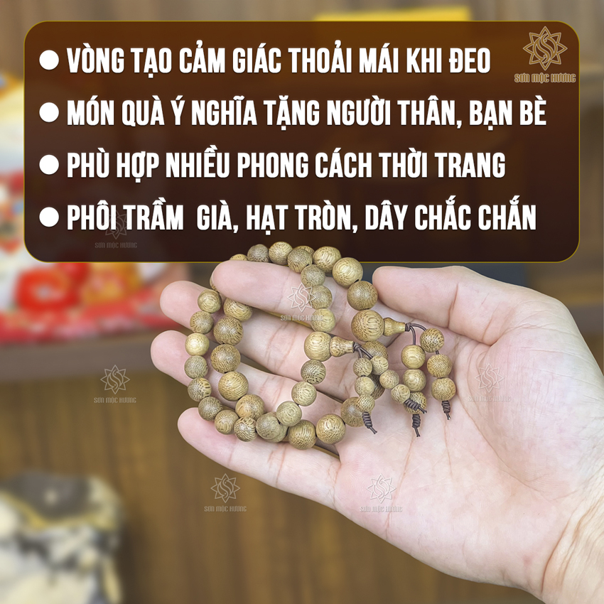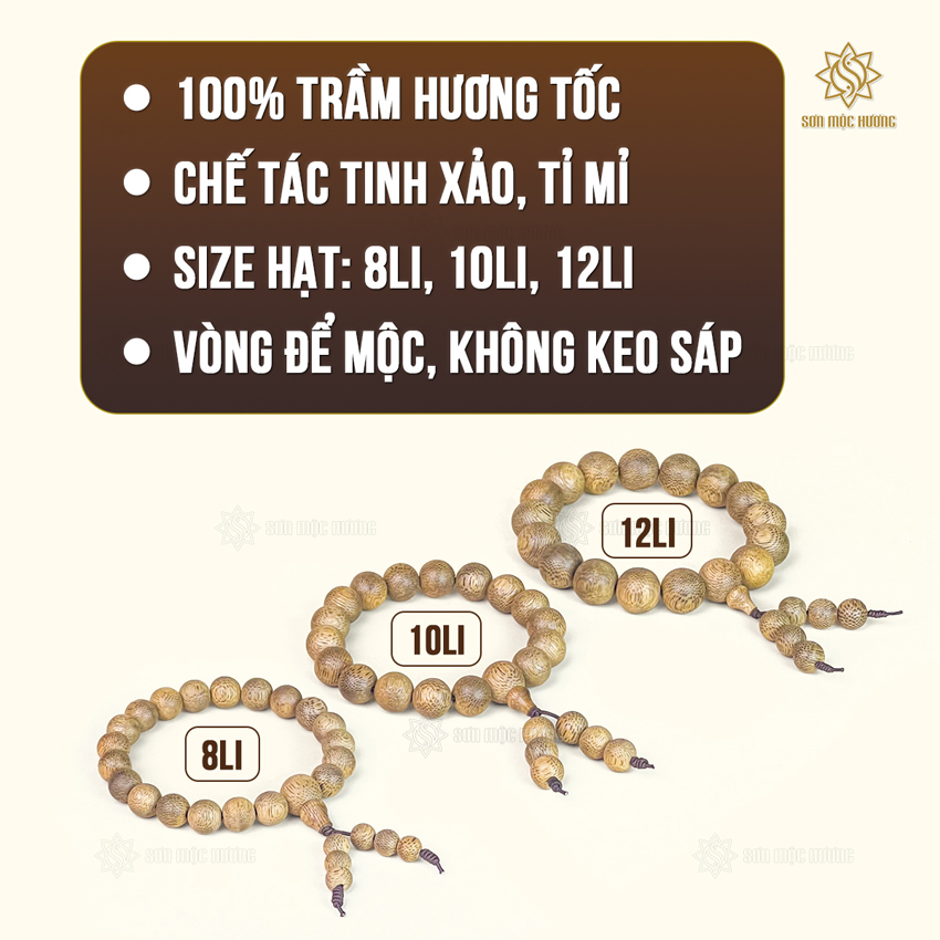 - Chất liệu: Trầm tốc mộc, vân sớ rõ ràng