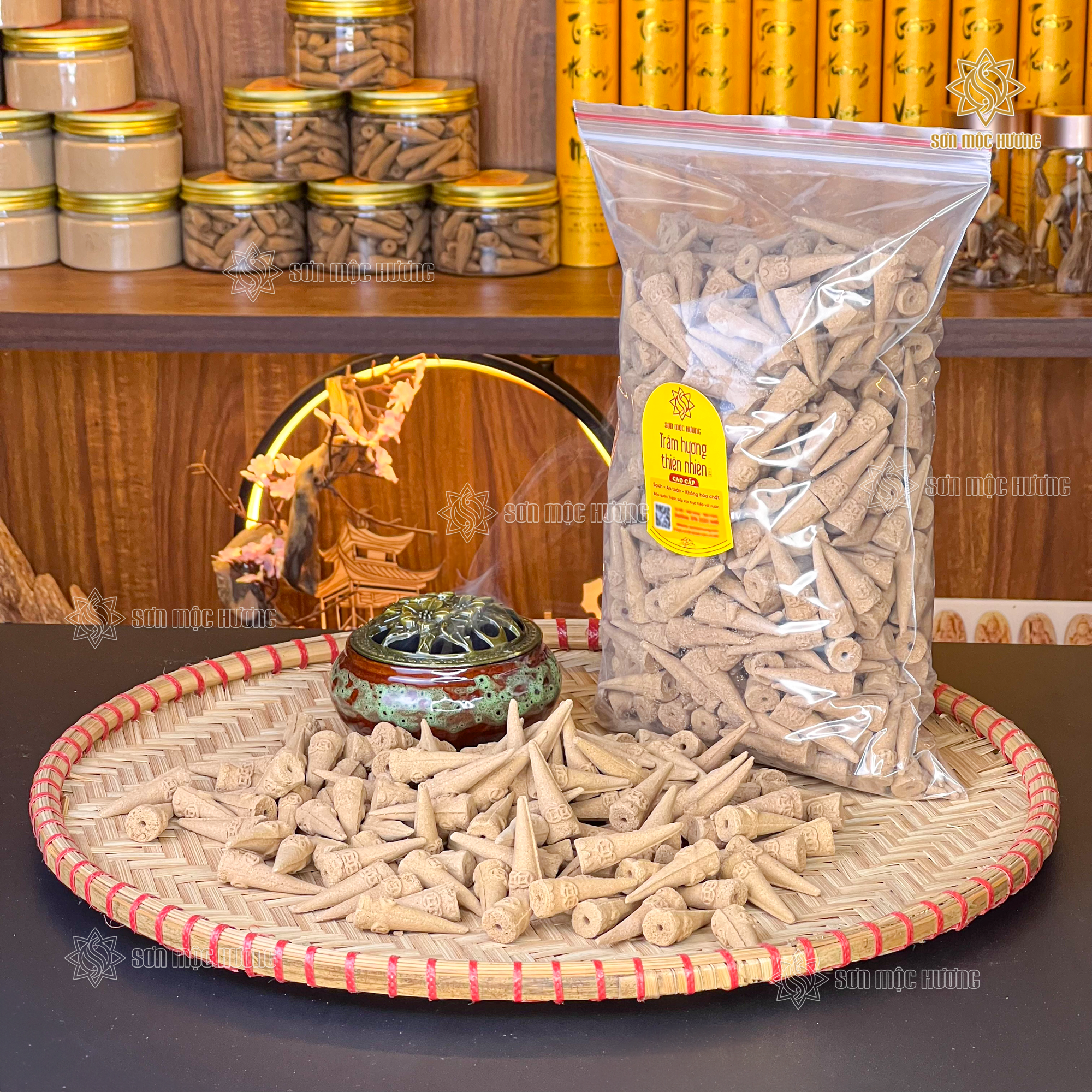 Bịch 1kg Nhang Nụ Trầm Hương Cao Cấp Sơn Mộc Hương Khói Ngược Sạch Thơm