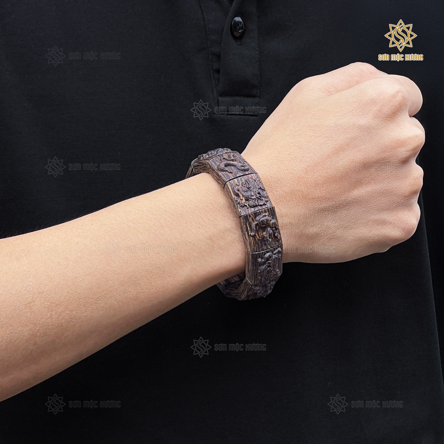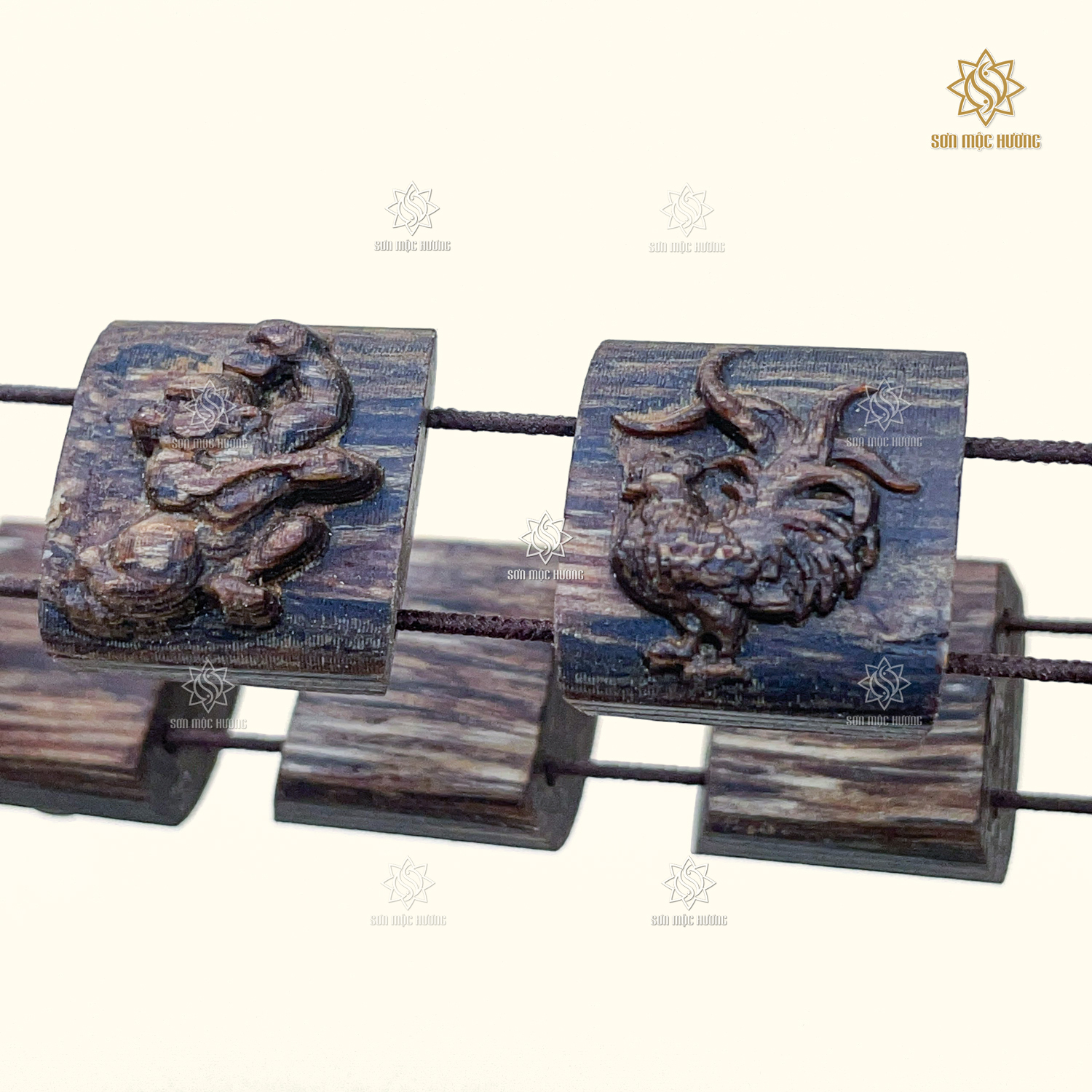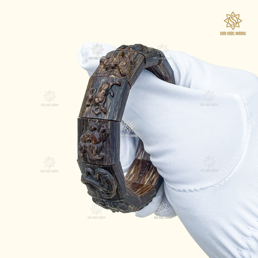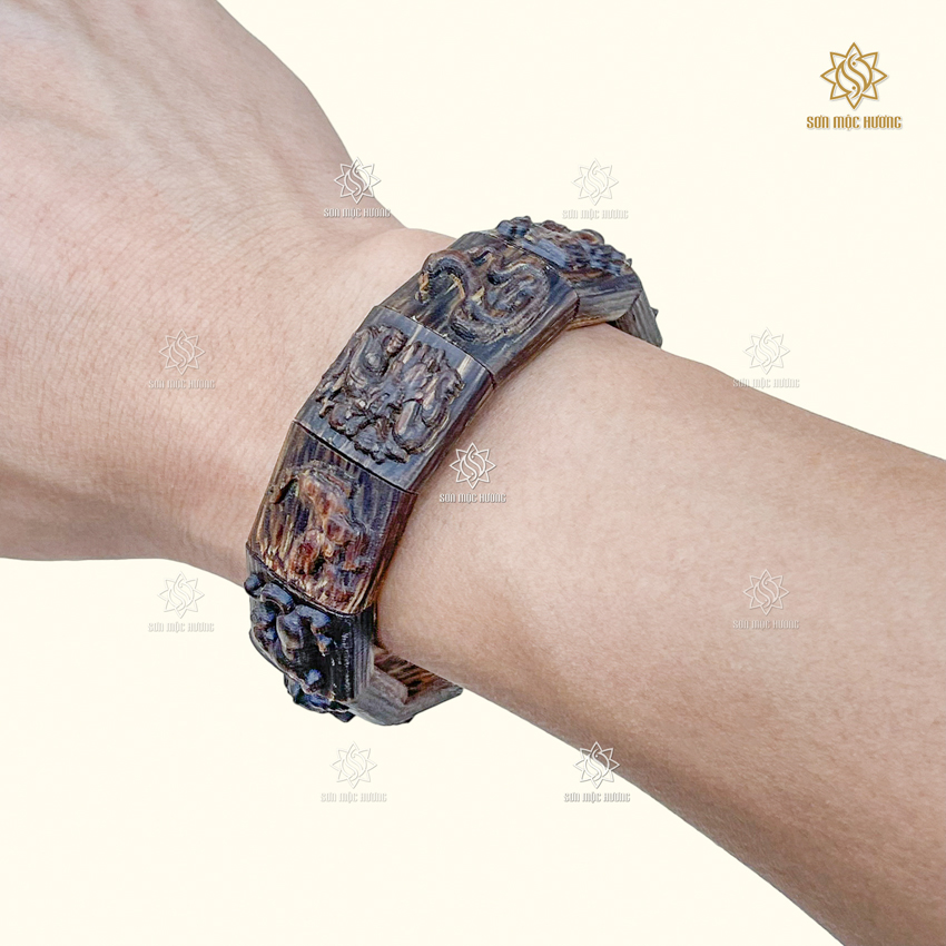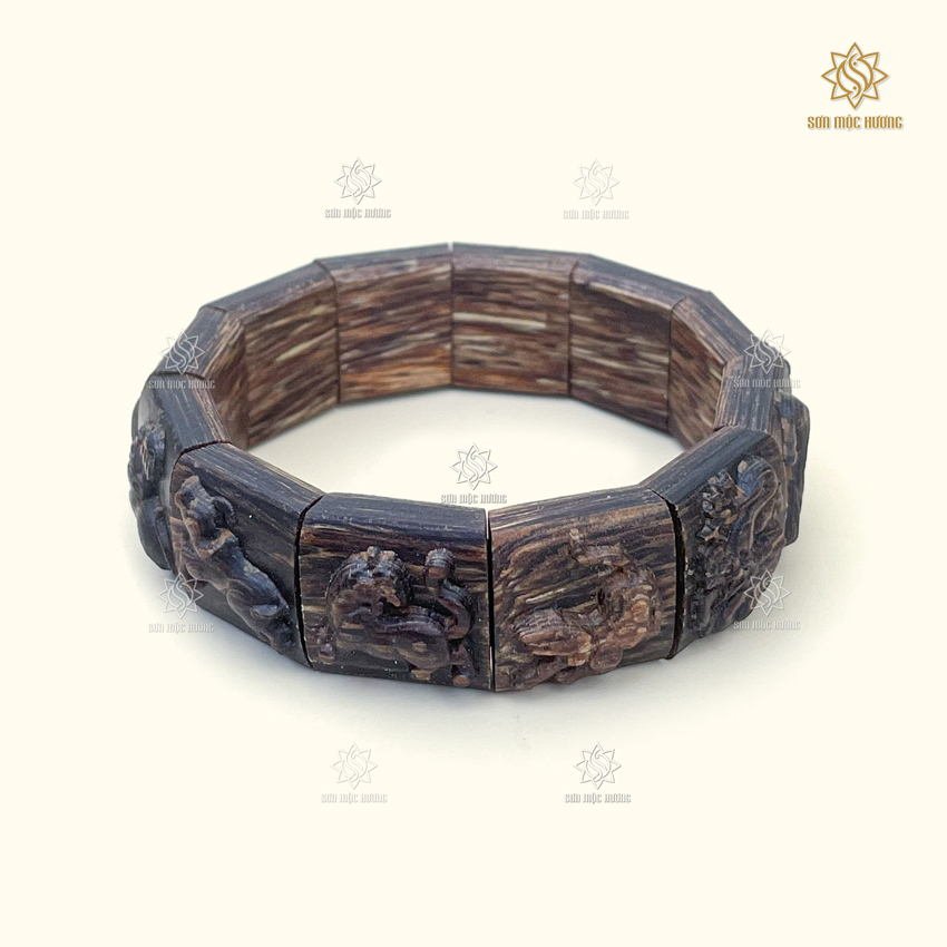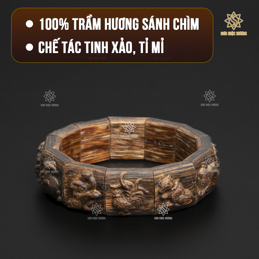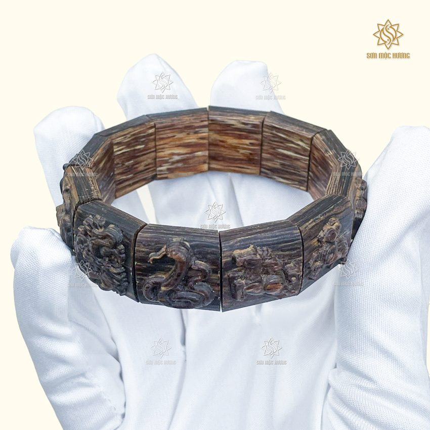 Vòng Tay Trầm Hương 12 Con Giáp Sánh Chìm Sơn Mộc Hương Cao Cấp