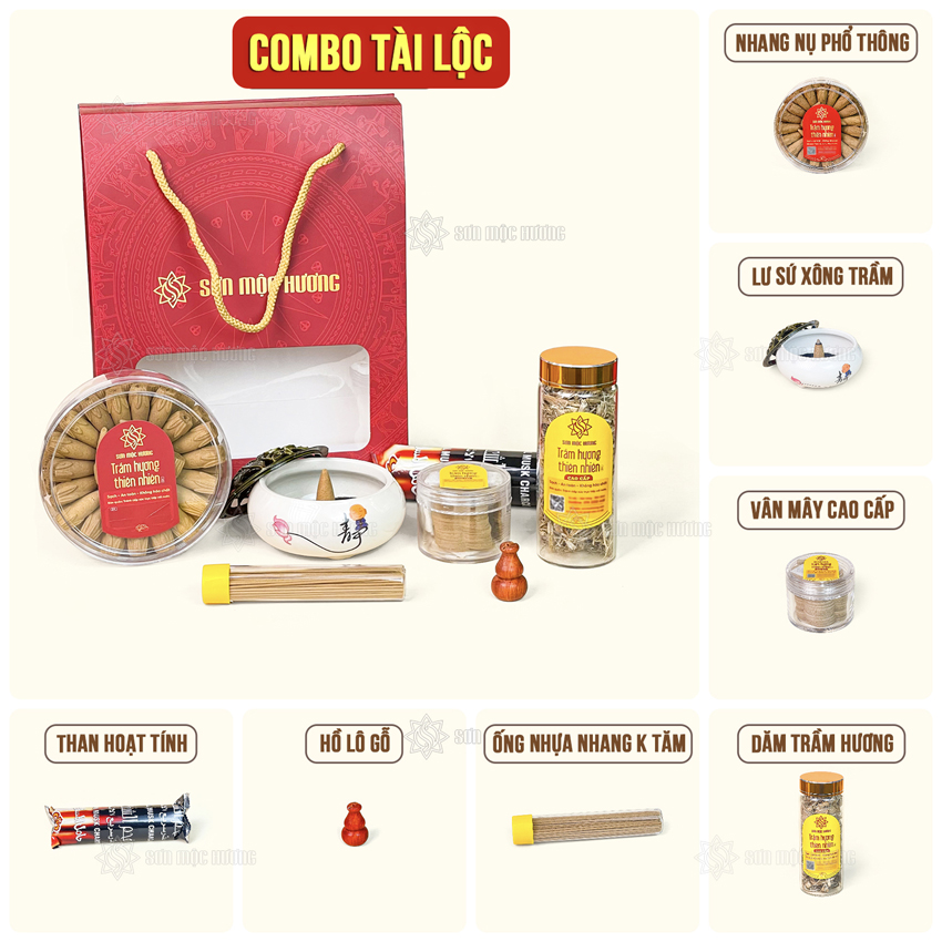 Combo set trầm hương Tài Lộc Sơn Mộc Hương quà tặng tân gia báo hiếu đối tác