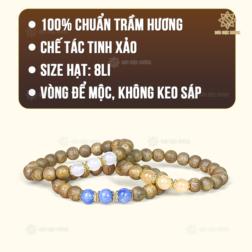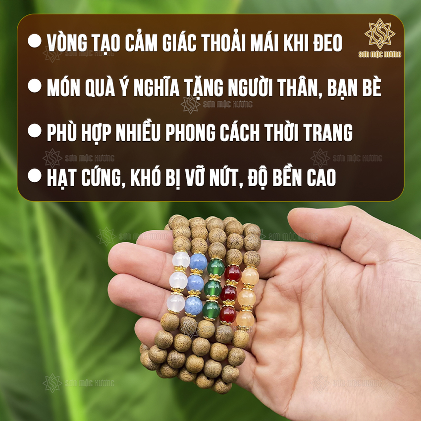Trong phong thủy, việc kết hợp giữa gỗ trầm và đá màu không chỉ tạo nên một món trang sức thanh lịch mà còn giúp cân bằng năng lượng cá nhân. Vòng tay trầm hương mix đá màu từ Sơn Mộc Hương được chế tác dành riêng cho những ai đang tìm kiếm sự bình an, may mắn và một vẻ đẹp mang đậm dấu ấn bản mệnh.