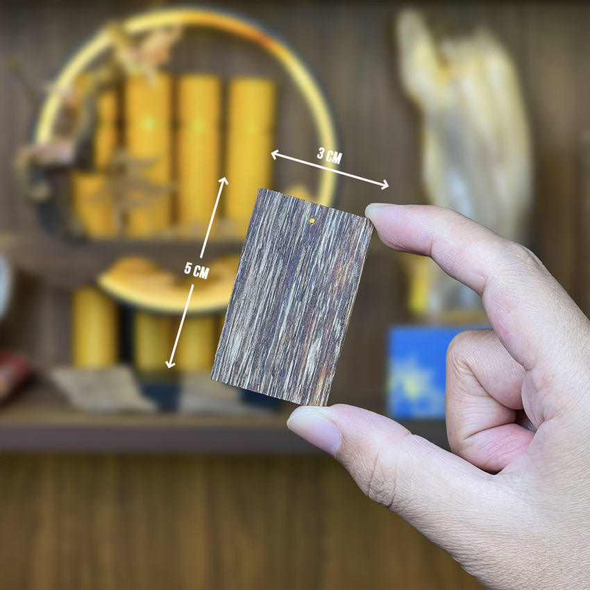 Chế tác thủ công: Từng miếng trầm được cắt gọt chuẩn kích thước 3x5cm, mài nhẵn các cạnh để đảm bảo không làm trầy xước ví hay các loại thẻ ngân hàng của bạn.