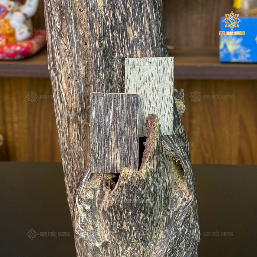 Để có được một miếng trầm hương bỏ ví đạt chuẩn, Sơn Mộc Hương đã lựa chọn kỹ lưỡng những khối trầm hương có mặt dầu dày.