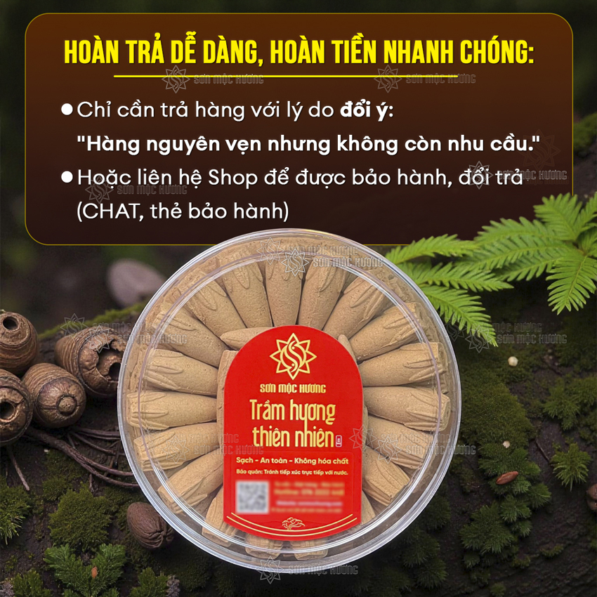 Slogan của chúng em: SƠN MỘC HƯƠNG - TRẦM CHUẨN - GIÁ CHUẨN. BẢO HÀNH ĐỔI TRẢ TRONG 30 NGÀY.