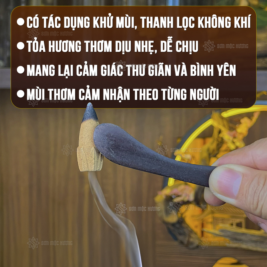 Mùi thơm mộc: Hương trầm thực chất, không sử dụng hương liệu nhân tạo.