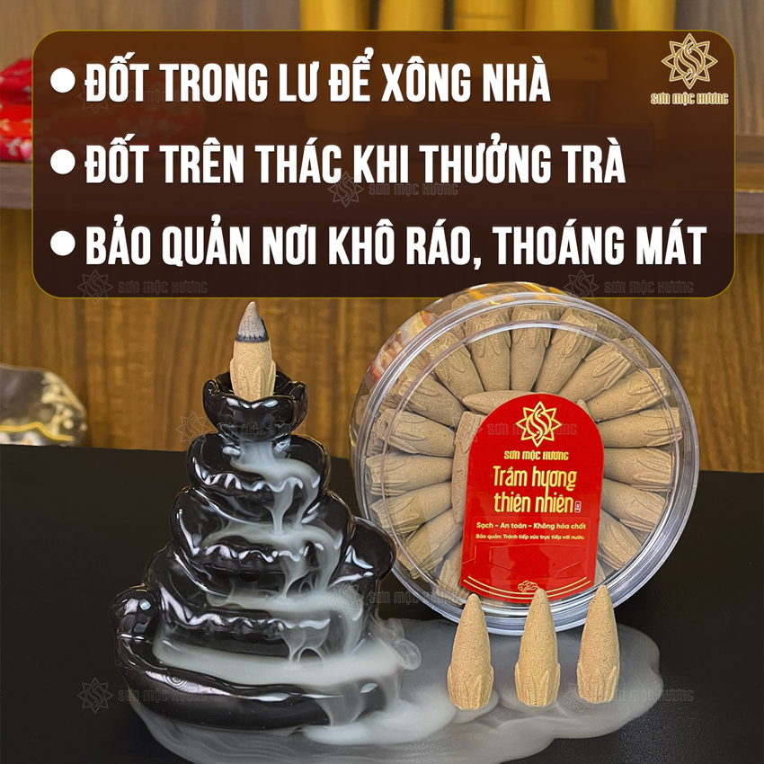 Cách dùng: Châm lửa đỉnh nụ, đặt vào phụ kiện chuyên dụng như lư xông, đĩa sứ hoặc thác khói để đảm bảo an toàn phòng cháy.