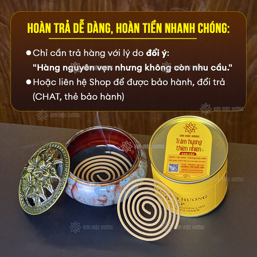 Slogan của chúng em: "SƠN MỘC HƯƠNG - TRẦM CHUẨN - GIÁ CHUẨN. BẢO HÀNH ĐỔI TRẢ TRONG 30 NGÀY."