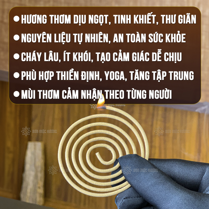 Trong nhịp sống hối hả, việc tìm kiếm một không gian tĩnh lặng để thư giãn hay tập trung làm việc là điều vô cùng cần thiết. Nhang khoanh trầm hương cao cấp của Sơn Mộc Hương được chế tác dành riêng cho những khoảnh khắc cần sự an yên kéo dài. Với thời gian cháy vượt trội và mùi hương ngọt thanh từ gỗ trầm rừng, đây chính là "người bạn đồng hành" hoàn hảo cho những buổi trà chiều, thiền định hay dâng hương bái thỉnh.