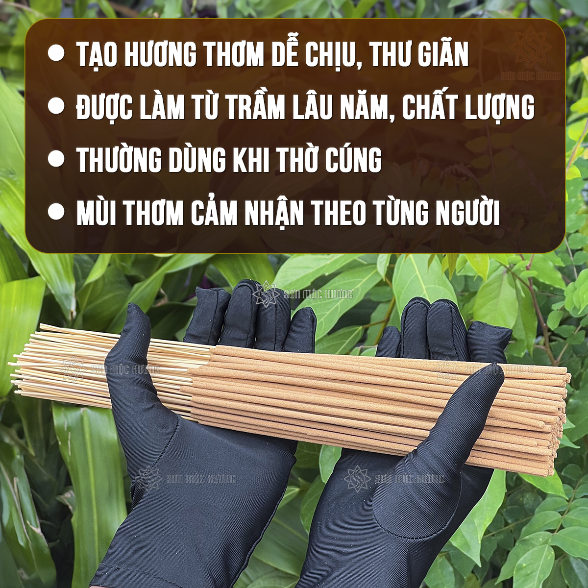 Nhang cây trầm hương cao cấp xông nhà Sơn Mộc Hương thơm ngọt ít khói dài 30cm nhang sạch an toàn
