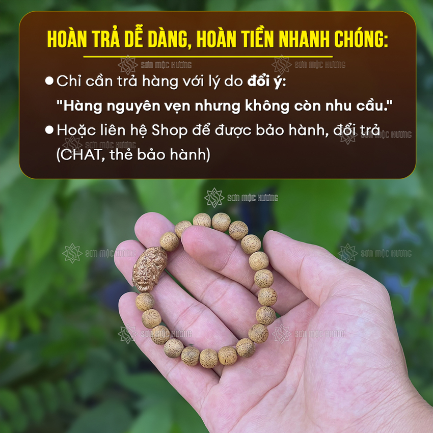 Slogan: SƠN MỘC HƯƠNG - TRẦM CHUẨN - GIÁ CHUẨN. BẢO HÀNH ĐỔI TRẢ TRONG 30 NGÀY.