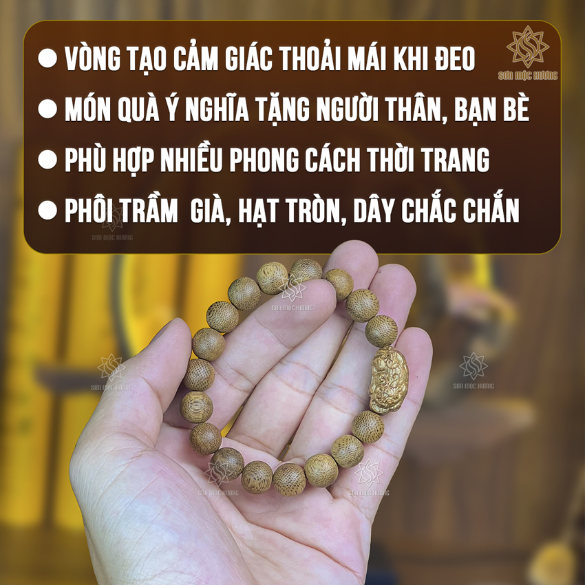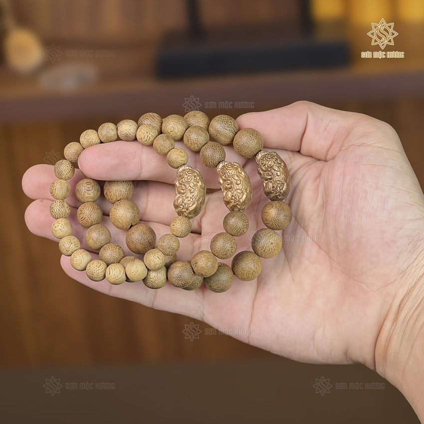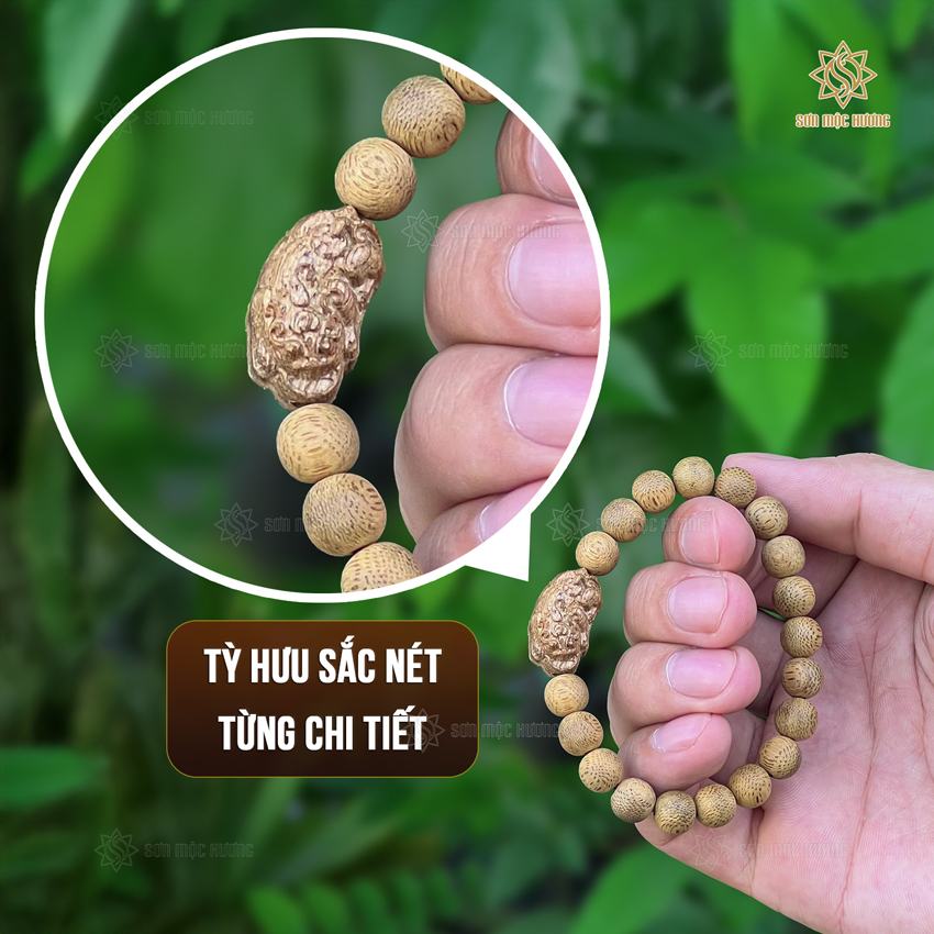 Trong bộ sưu tập trang sức gỗ quý tại Sơn Mộc Hương, vòng tay trầm hương mix Tỳ Hưu luôn là sản phẩm chiếm trọn cảm tình của khách hàng. Đây không chỉ là một phụ kiện thời trang sang trọng mà còn là sự kết hợp hoàn mỹ giữa chất liệu trầm tốc tự nhiên và linh vật Tỳ Hưu được chạm khắc thủ công. Chiếc vòng là lựa chọn tuyệt vời cho những ai tìm kiếm sự tự tin, thư thái và vẻ đẹp đẳng cấp trong cuộc sống hằng ngày.
